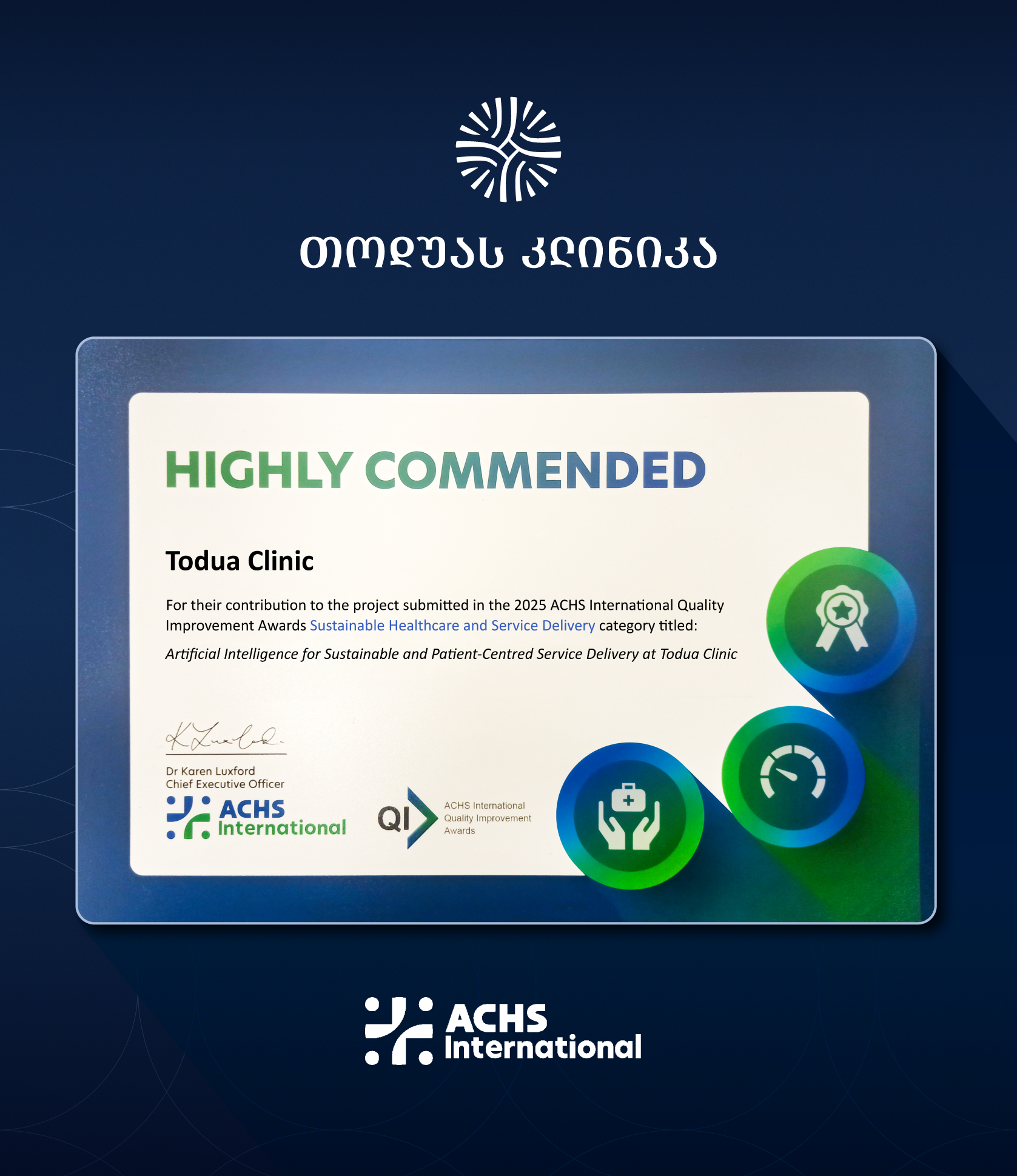 თოდუას კლინიკამ მოიპოვა კიდევ ერთი მნიშვნელოვანი საერთაშორისო აღიარება!